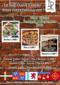 Le 12 septembre 2025, notre restaurant vous invite à un voyage culinaire au cœur du Sud-Ouest de la France.